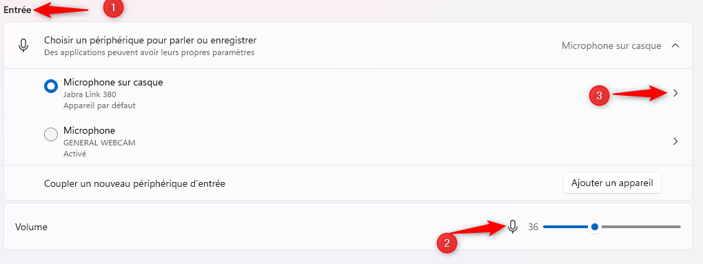 Au niveau de l'entrée et de votre casque, cliqué sur la flèche