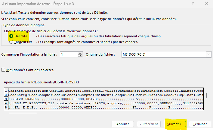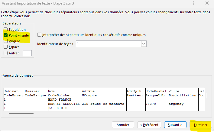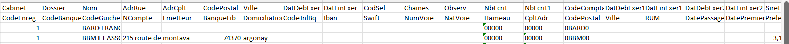 Toutes les données des fiches tiers sont donc répertoriées dans le fichier et il est possible de repérer facilement les anomalies