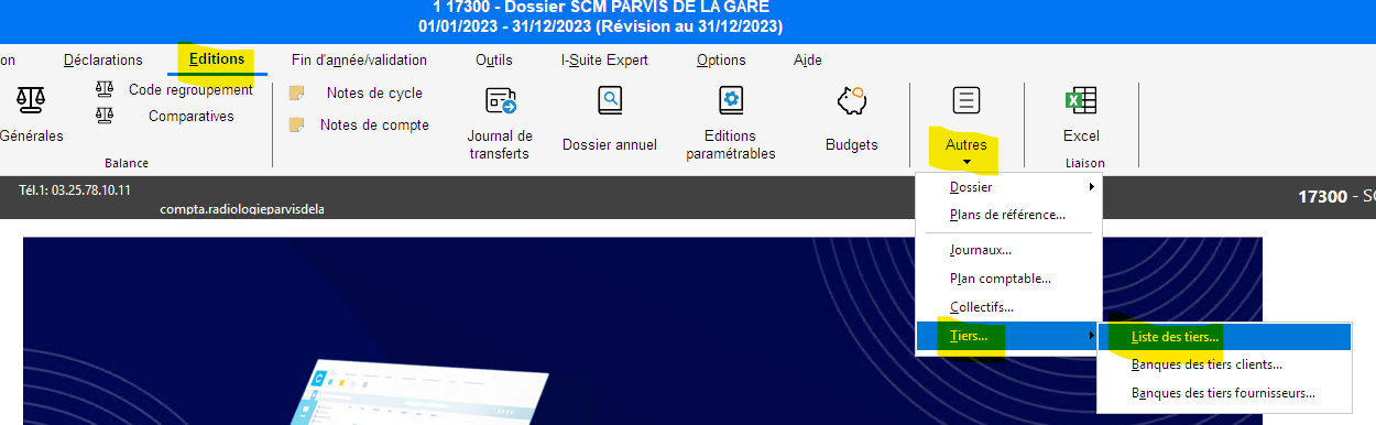 Solution 1 - Export du fichier des fiches Tiers puis exploitation dans EXCEL