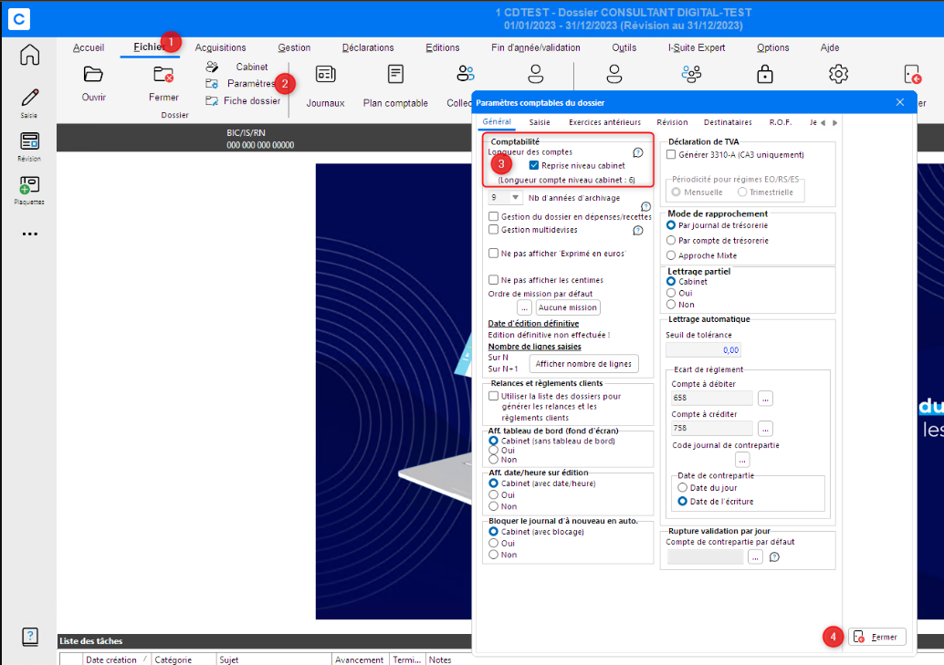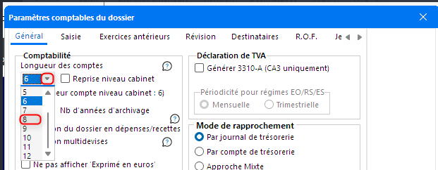 Si vous avez besoin de modifier la longueur des comptes d'un dossier , vous trouverez ci-dessous la procédure pour spécifier la longueur compte autre que le niveau cabinet (6)