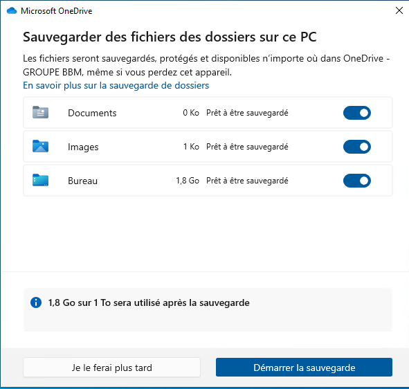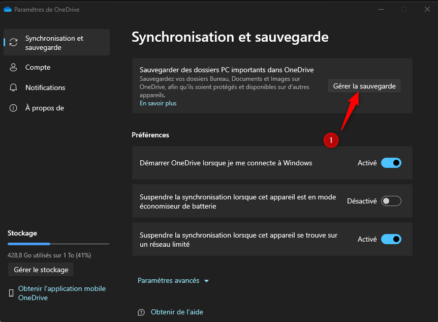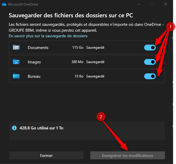 2. Vous avez configuré OneDrive mais vous n'êtes pas sûr que la sauvegarde soit activée