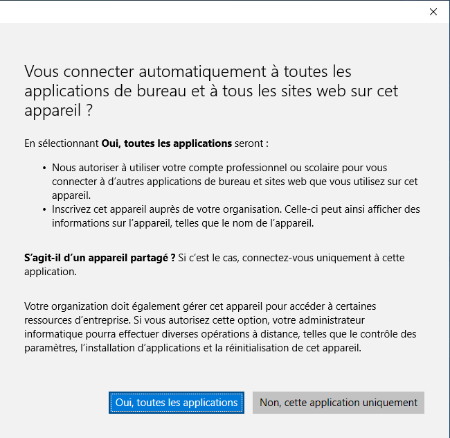3. Si ce message s'affiche, cliquez sur "Oui, toutes les applications"
