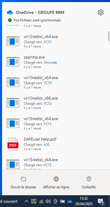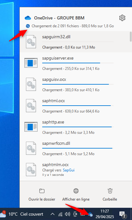7. En cliquant sur l'icône OneDrive dans la barre des tâches, vous pouvez suivre l'état de la synchronisation de vos documents
