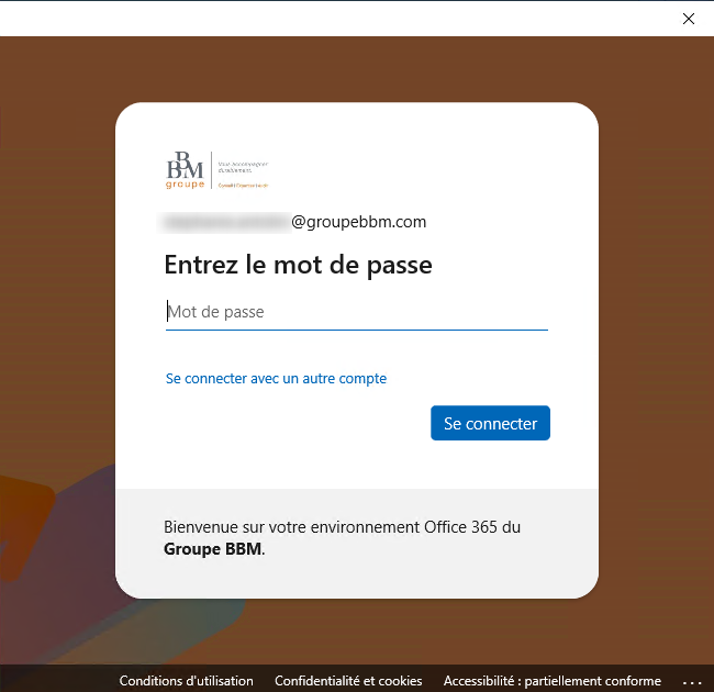 Ne jamais saisir votre mot de passe Microsoft si le logo et le fond BBM n'apparaissent pas sur la page d'authentification