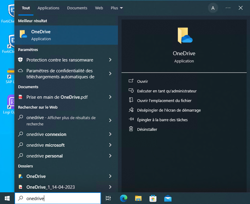 1. Cherchez l'application OneDrive dans votre menu démarrer