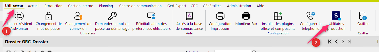 Dans DIA, menu utilisateur puis Utilitaires de production