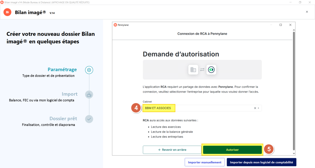 d'autorisation, sélectionner le cabinet BBM ET ASSOCIES (Point 4), puis cliquer sur le bouton Autoriser (Point 5)
