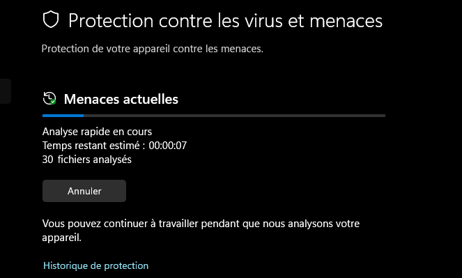 Pour effectuer un scan manuel avec l'antivirus Microsoft Defender