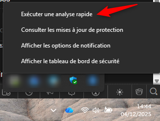 2- Faites un clic droit, un menu apparait, cliquez sur "Exécuter une analyse rapide"