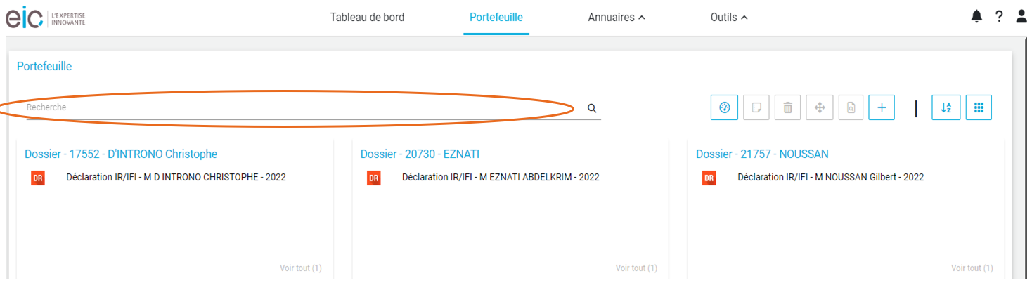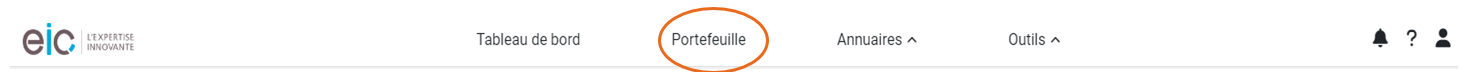 Une fois connecté à DR via le portail MyEic - Authentification (cf. procédure intranet – Support IT - FAQ : MyEIC - Se connecter à DR), sélectionnez « Portefeuille ».
