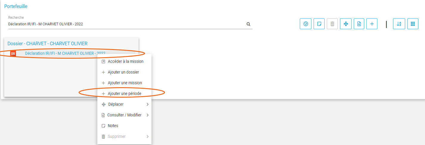 Faites un clic droit sur la déclaration de l’année antérieure, puis sélectionnez « Ajouter une période ».