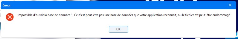 Erreur ce n'est pas une base de données que votre application reconnaît