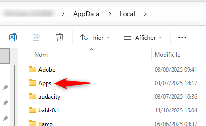 Dans cette fenêtre chercher le répertoire Apps