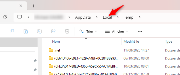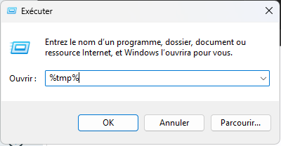 Saisir dans la fenêtre %tmp% et faire OK