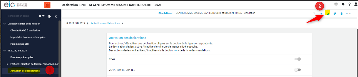 Vous pouvez modifier le statut d'une simulation/déclaration dans le menu "Activation des déclarations"