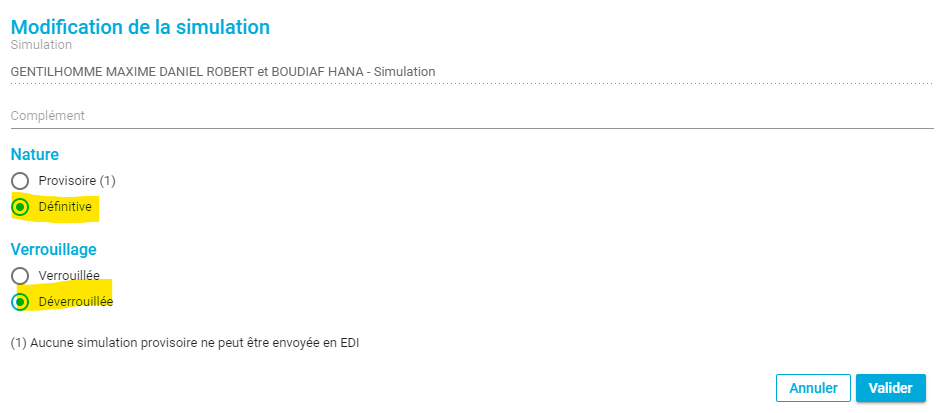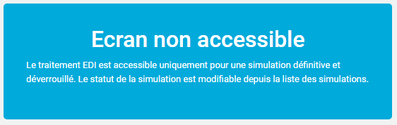 Si vous avez l'écran suivant lors de l'envoi EDI, il faut modifier le statut de votre simulation/déclaration