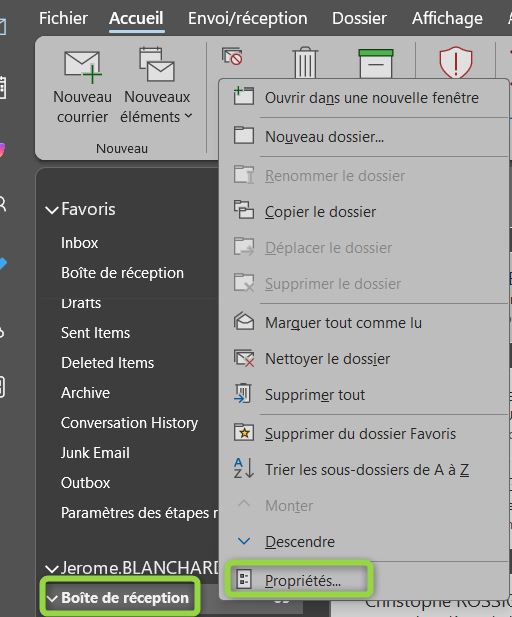 - Faites un clic-droit sur Boite de réception puis Propriétés...