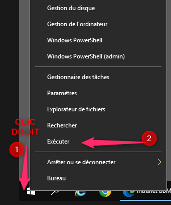 Faites un clic droit sur le logo Windows, et choisissez Exécuter