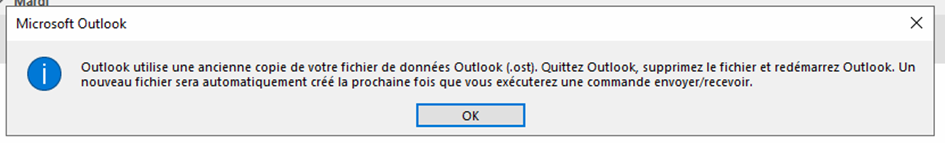 Si vous rencontrez ce message à l'ouverture d'Outlook sur le Bureau 2X.