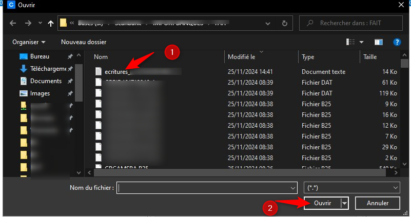 Sélectionner le fichier d'écritures, qui doivent se trouver dans les téléchargements
