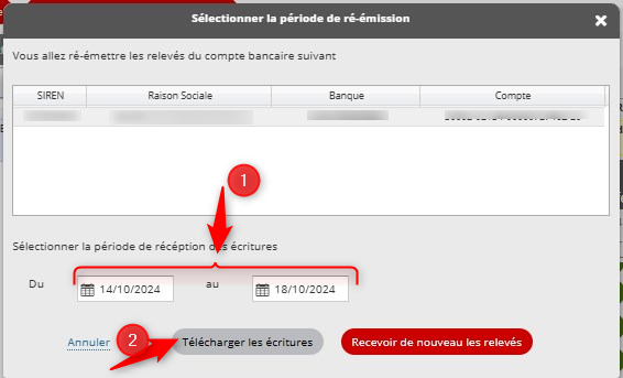 Indiquer la période manquante, puis faire Télécharger les écritures