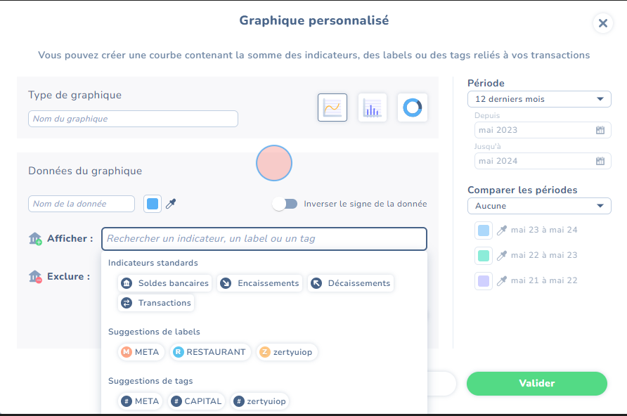 En choisissant graphique personnalisé, vous aurez plusieurs indicateurs à utiliser ou exclure.